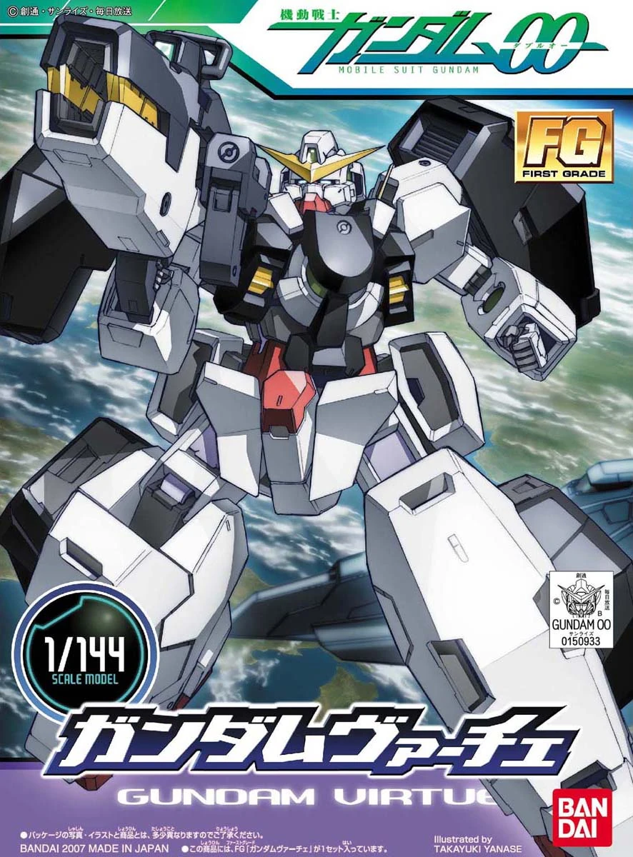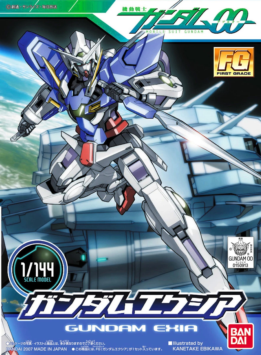 The second incarnation of First Grade was released in 2007 for the first season of the Mobile Suit Gundam 00 series. Unlike the original line, this line has the kits molded in multiple colors. The four box covers can combine into a mural forming the Ptolemaios in the background.